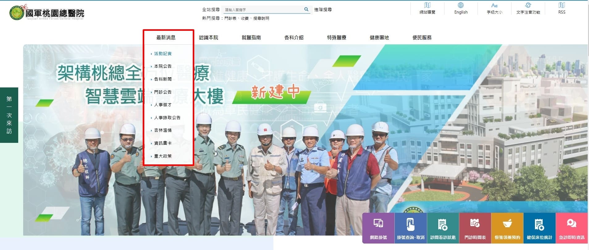 2-1.最新消息:提供本院重要公告、各科新聞、門診及人事徵才相關最新的訊息。