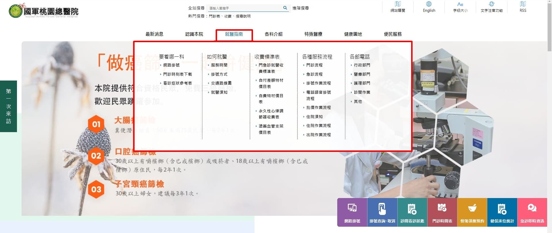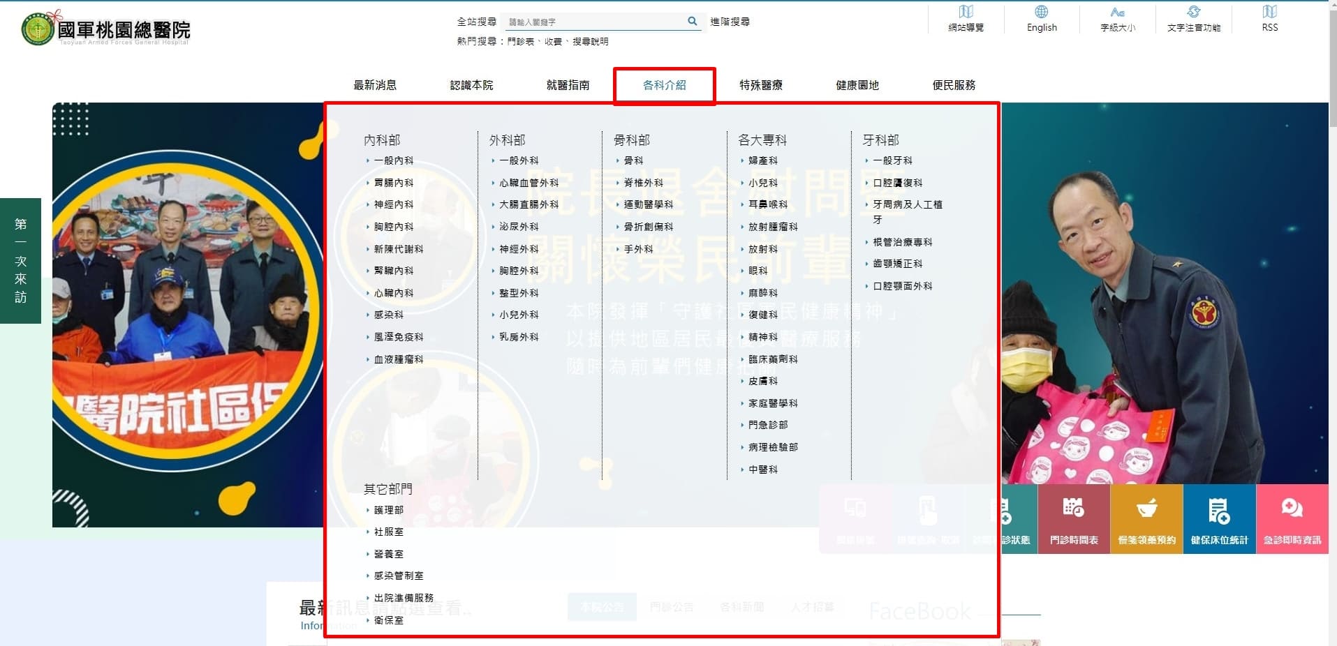 2-4.各科介紹:詳細認識診療科系、各科醫師介紹,本單元都有清楚的分科別完整說明,可以多加利用。