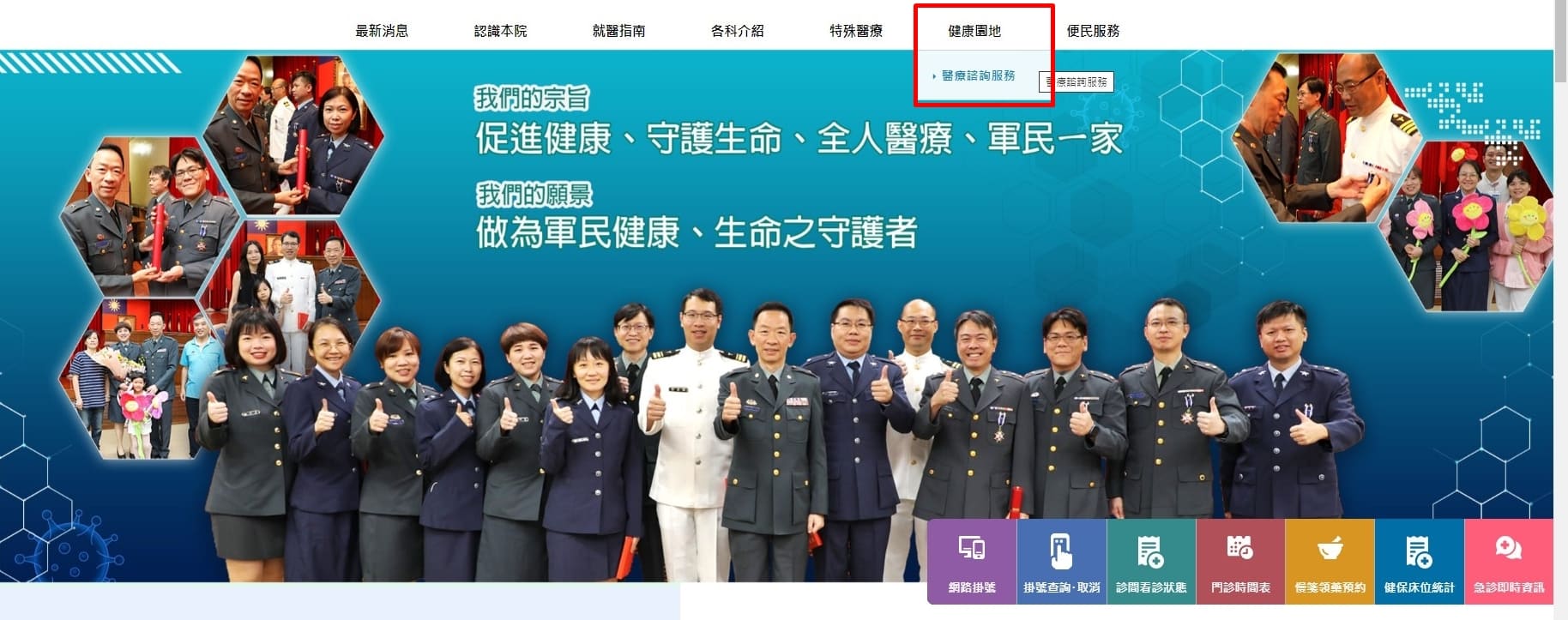 2-6.健康園地:本單元提供本院各項醫療諮詢服務窗口資訊、及相關衛教文章等。